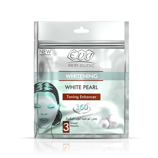 ماسك للوجه من ماركة Eva، قناع ورقي بتركيبة فريدة تحتوي على خلاصة اللؤلؤ الأبيض يمنح البشرة إشراقاً مميزاً ويوحد لونها مع تأثير مرئي فوري وإحساس عالٍ بالراحة.